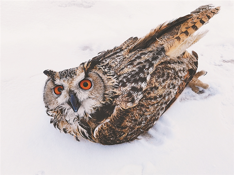 随后,民警上前检查发现,这只猫头鹰翅膀受伤不能移动。几人很快将其带回执勤警务室取暖,第一时间与饶河县林业局人员取得联系,工作人员赶到警务室将其带回并进行救助。