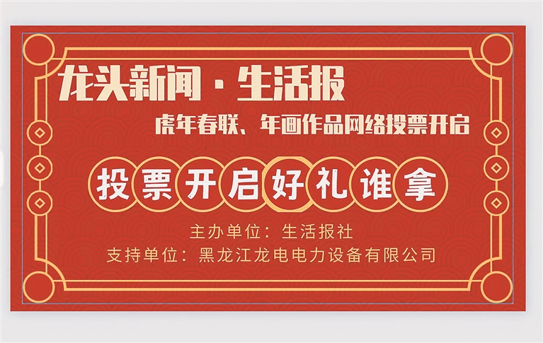 生活报讯 (实习生郭佳鑫 见习记者崔凯歌 记者吕晓艳) 一副副喜气洋洋的春联、一张张色彩绚丽的年画……生活报联合黑龙江龙电电力设备有限公司征集虎年春联、年画的消息发布以来,收到数百份来自龙江各地、各行各业读者朋友们的优秀作品。经过评委专家组数日认真细致的评选,从这些春联、年画作品中精选出20份作品入围,进入读者网络投票阶段。快投出您手中宝贵的一票,让最心仪的作品脱颖而出吧!