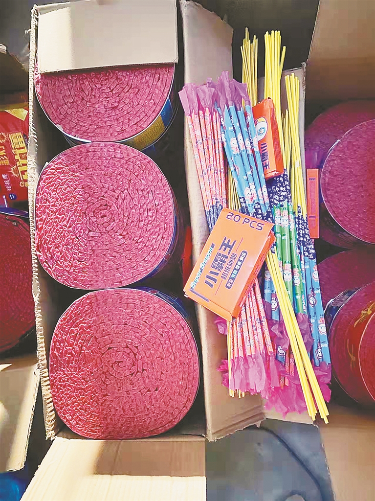 18日,道里公安分局太平庄派出所民警在巡逻中发现违法行为人王某成在太平镇先发村马架屯集上违法售卖烟花爆竹,违法行为人王某成为吸引顾客公然在集市摊位前燃放爆竹,随即民警依法将其传唤回派出所。