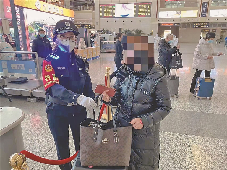 很快,旅客闻讯赶来,民警对包内物品进行逐一清点,交还给该旅客,并热心提醒其出门在外要注意个人人身及财物安全。