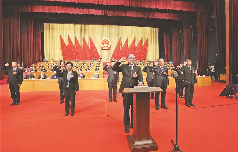 26日,省十三届人大六次会议举行当选人员向宪法宣誓仪式。省委书记、省十三届人大常委会主任许勤领誓。龙头新闻记者 郭俊峰 邵国良 摄