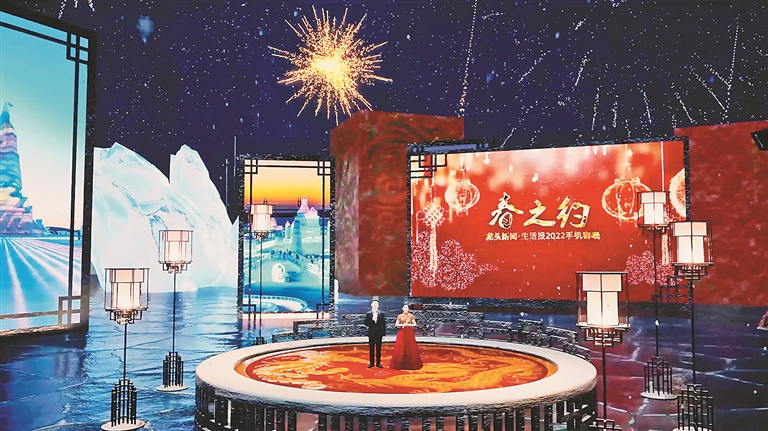提到在《春之约——龙头新闻·生活报2022手机春晚》晚会中的技术应用,技术人员告诉生活报记者,在现实中,短时间内搭建一个美轮美奂、大规模的演播室是极其困难的,于是技术人员就借助于虚拟现实增强的特殊功能,来实现技术性的革新。舞台的场景采用基于强大的渲染引擎,实现了独特的视觉效果,各种粒子特效、光效、冰面模拟让场景达到逼真的视觉体验。