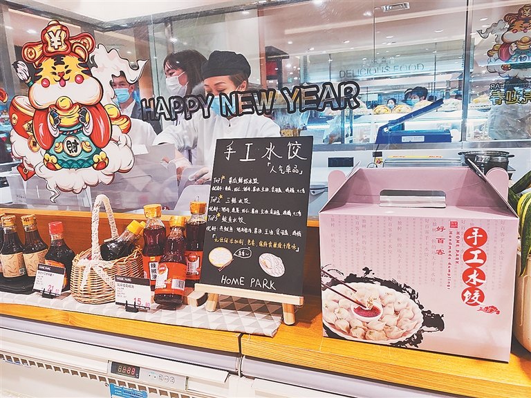 “过年不再是单一的馅料,多买几种馅,吃着像拆盲盒一样。”店员向记者介绍,他们展柜里有二十多种馅,价格从25元一斤到88元一斤不等,海鲜、牛肉类偏贵,卖得最好的是黄瓜虾仁馅和三鲜馅,鲅鱼馅卖得也很好。