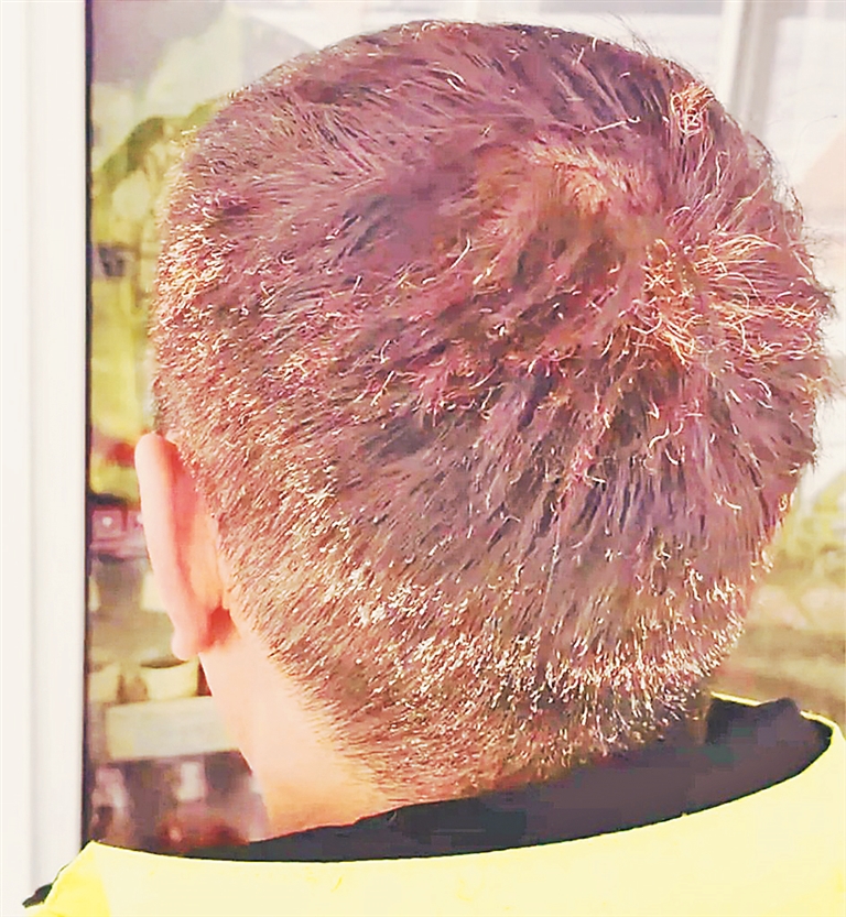 两人一边用水浇明火,一边将锅炉房内的杂物拖拽到室外。经过两人共同努力,室内明火被控制住,排除了复燃隐患。就在这时,王伟、史金雨发现房顶处也有浓烟冒出,两人立即与消防队联系。拨打完报警电话后,史金雨又跑回执勤卡口,将灭火器拿来与王伟一同上房顶灭火,最终隐患被两人成功排除。而在场人员看到,王伟在救火过程中,头发被烧焦变成了黄色,而王伟笑着对周围人说,“节前忙得没空去理发,这一把火帮我把头发剪了”。