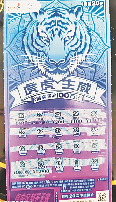 1月7日,浙江省宁波市的周先生购买“锦虎贺岁”即开票并中得30万元,叠加浙江体彩活动,共计到手60万元。作为一名资深购彩者,周先生平时就喜欢购买顶呱刮,每次有新票上市就会刮几张。这次恰好在活动期间中了奖,收获了属于自己的双倍幸运。
