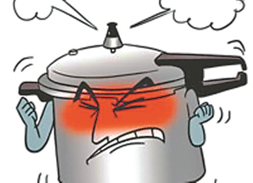 关煤气就打开高压锅阀门 被热气喷出水泡
