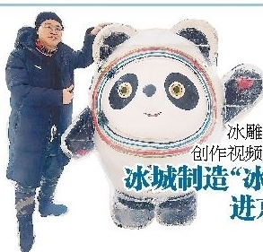冰城制造“冰墩墩” 进京助威