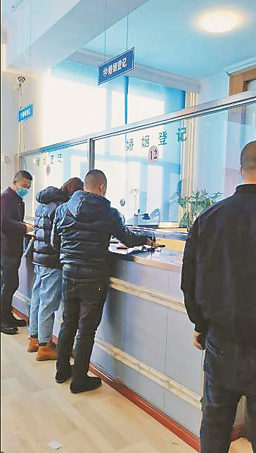 13时30分,生活报记者来到哈市松北区政务服务大厅,这里正在搬迁,门口一个标牌写着综合办事大厅新址。大厅里婚姻登记处、社保医保等两处办公区域还在办公,人较多,现场有一名工作人员口头提醒市民:“登记的叫号,社保的排队。”