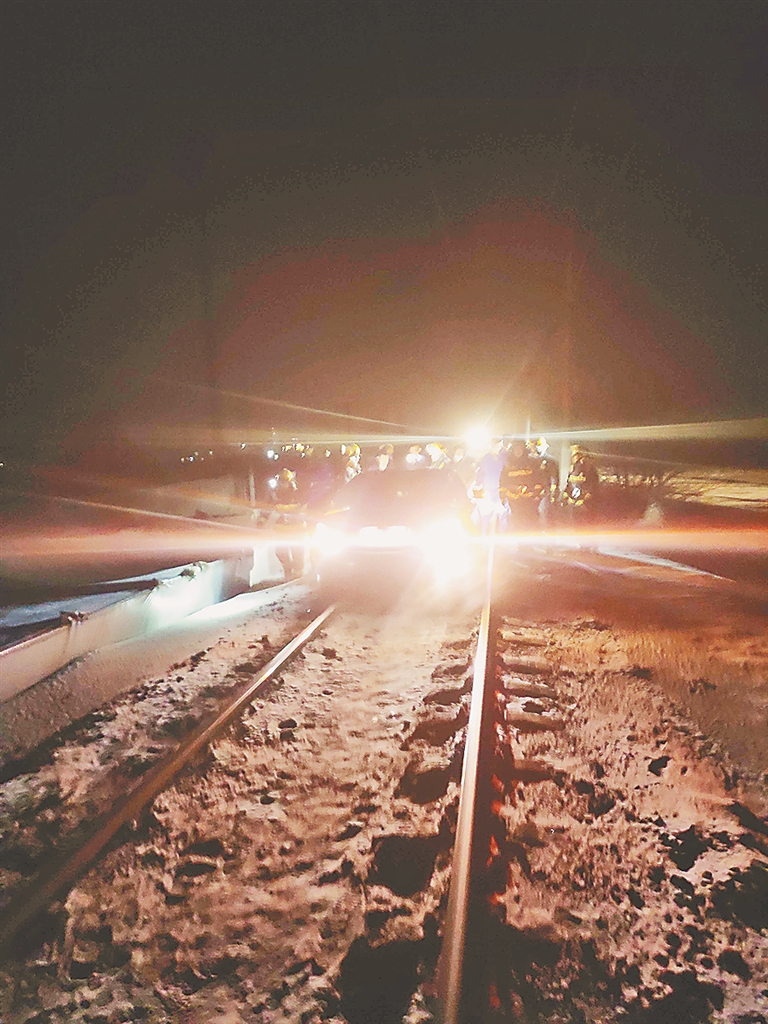 情况万分危急,此时,孙凯龙来不及多想,赶紧迎着火车跑去,边跑边挥舞手电筒,跑出大约100多米后,火车司机发现前方的警示,立即紧急制动刹车,几秒钟后,火车在轿车前方约40米处停下来了。停车后,孙凯龙与火车司机讲述了现场情况,火车司机立即向单位报告,临时暂停其他火车通过。随后,消防救援部门也及时赶到,大家齐心合力,将轿车顺着铁道倒推了200余米,终于脱离了火车轨道,火车也正常通行了。