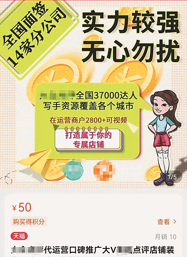 ——第三方机构介入,刷分控评“明码标价”。记者在购物网站输入“口碑运营”等关键词,出现大量宣称可以提高评分、优化评论的第三方机构。甚至有机构声称拥有3万多名“达人”“大V”,业务范围覆盖全国,“只要你肯投入,就有专业人士送上优质好评。”