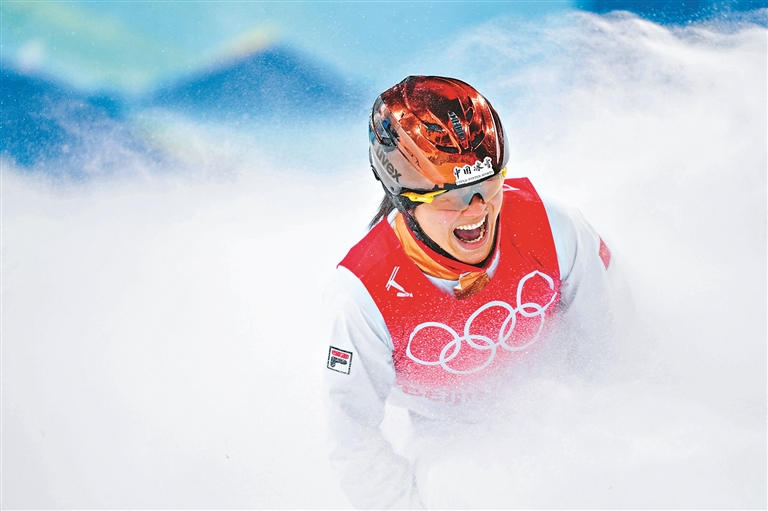 在当晚的决赛中,徐梦桃与队友孔凡钰携手出战,最终她延续了资格赛的好状态,以出色的发挥,揽下了这枚金牌。