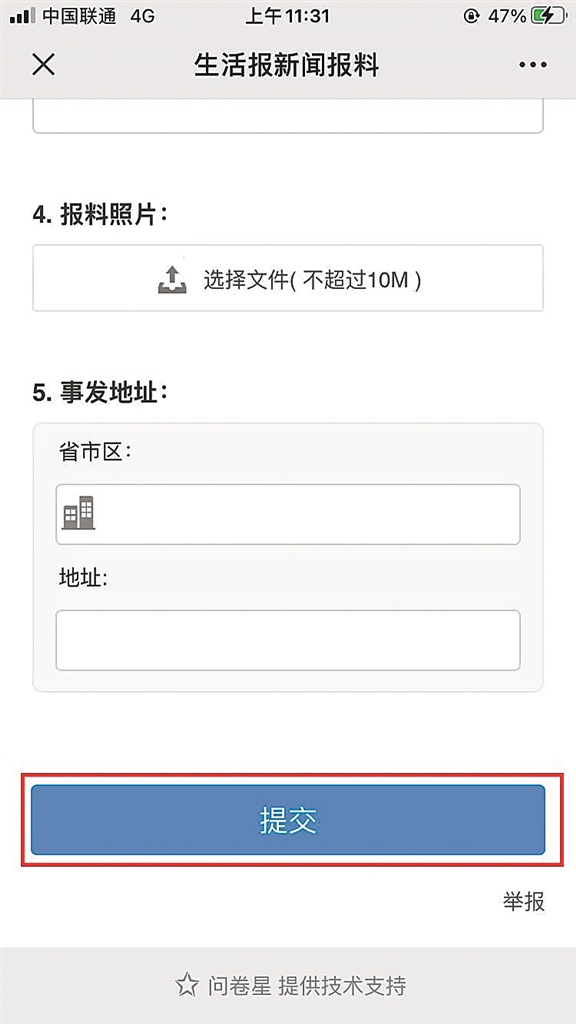 关注生活报官方微信账号,点击右下角新闻报料,进入页面后按要求填写报料信息,并点击“提交”,留下您要反映的新闻线索,就会有记者和您联系。