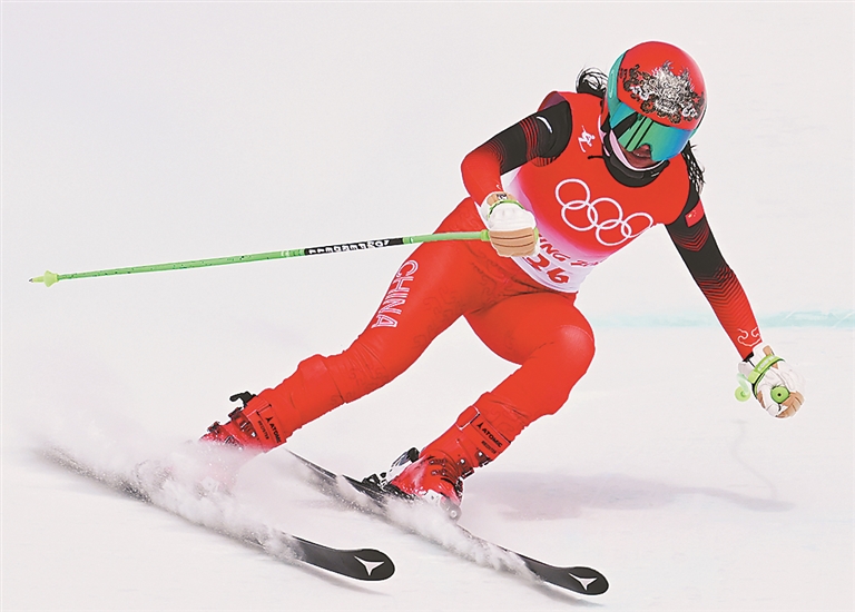 比赛中,中国运动员、黑龙江姑娘孔凡影以1分44秒53顺利完成了自己第一次冬奥会竞速项目女子滑降比赛,名列第31名。顺利完赛的一瞬间,孔凡影在头顶比了一个爱心,而且还竖起大拇指鼓励自己。