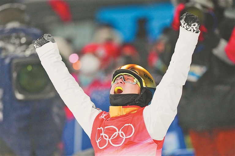 2006年都灵冬奥会,韩晓鹏在空中技巧项目决赛中夺冠,为我国夺下雪上项目首枚冬奥金牌,也开创了中国男子选手在雪上项目新的历史。此后三届冬奥会,中国空中技巧队每届都有奖牌入账,却始终无人问“金”,直到本届赛会,徐梦桃收获女子空中技巧金牌后才打破了“魔咒”。当时,她寄语男队:“别有负担,放开比。”
