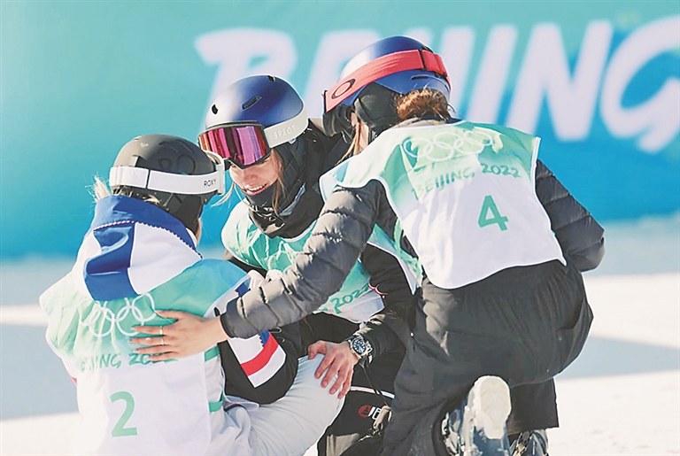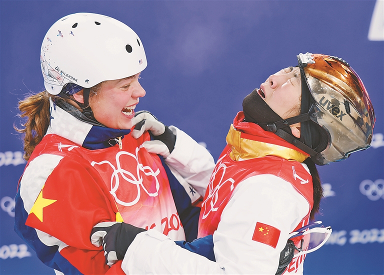 在昨天的自由式滑雪女子坡面障碍技巧决赛中,瑞士队选手玛蒂尔德·格雷莫德夺冠,获得银牌的谷爱凌大声欢呼,上前与她拥抱庆祝!不分国界,无关输赢,喜悦与激情感染着现场的每个人!这样动人的场景,在北京冬奥会一次次出现。