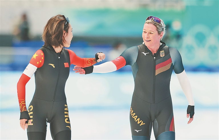 我们是对手,也是奥林匹克历史长河中的接力传承者。5日,北京冬奥会速度滑冰女子3000米比赛中,第一组上演“老少对决”。22岁的中国队选手阿合娜尔·阿达克开始了自己的第一次冬奥会征程。而她的对手,是史上年纪最大的女子冬奥选手——49岁的德国队选手克劳迪娅·佩希施泰因。这是佩希施泰因的第八次冬奥会之旅,她曾在冬奥会上收获过5金2银2铜。最终,阿合娜尔率先冲过终点,领先佩希施泰因近5秒。