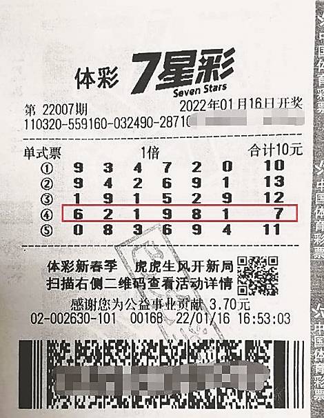 据介绍,周先生已购彩多年,2021年新7星彩上市后,感觉规则很简单,于是把7星彩列入了购彩清单。周先生购彩一般都是随机选号,不过有时候看到有眼缘的号码,也会拿来守号,中得一等奖的这5注号码,就是他前段时间随机选出的。感觉不错就拿来守号了,没想到没多久就中了500万大奖。