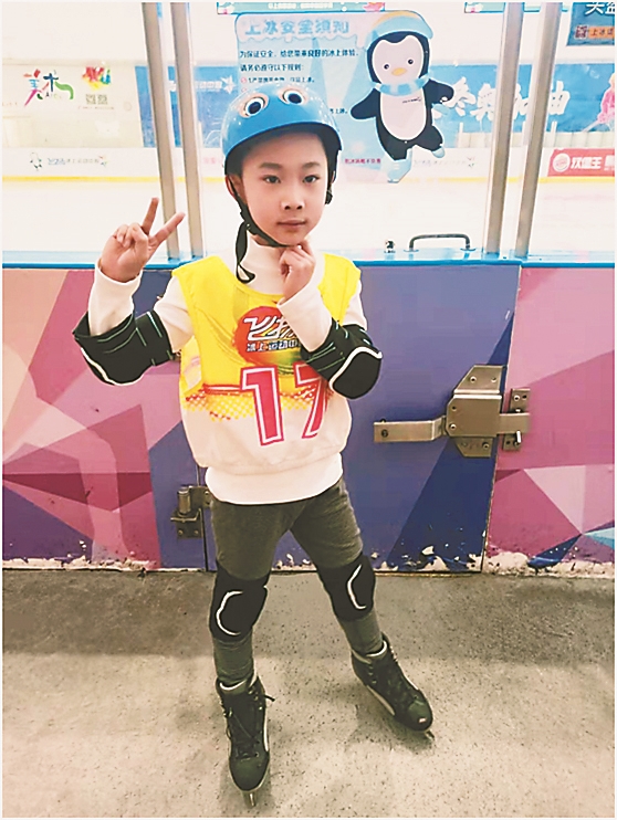 在冬奥上我观看了很多场精彩的比赛,让我印象最深的是中国选手任子威在男子1000米短道速中取得金牌的情景。在那一刻我真是既兴奋又激动,于是我有一个想法,我也要学滑冰。妈妈第二天就给我报了滑冰课,我高兴极了。我到了滑冰的场地换好了装备,教练说让我们穿上冰刀鞋在冰面上走走,我走得很轻松。接着教练提高了难度,左脚向后推,右脚向前屈膝,这样交替滑。不知道是不是任子威哥哥给我施了魔法还是我就是个运动小天才,我不但没有滑倒还在学习期间获得小组比赛第一名。这种成就感就好像我也是冬奥冠军一样。