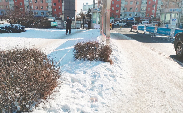 住在松北区世纪花园C区的居民张大爷说:“物业清雪不及时,小区里来回走车,道路上的冰雪被压实后光如镜面,加上天气升温后融化,降温后又再次上冻,路面简直成了冰场。小区老年人和孩子很多,都不敢出来走动。”