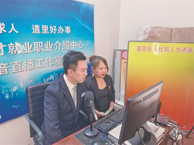 据了解,道里区人社局积极拓宽就业服务渠道,在“道里就业创业”公众服务号线上服务平台基础上,创建了道里区人才就业职业介绍中心网络直播工作室,于每周三14时至15时30分开展直播活动,并以现场互动的方式开展就业对接服务。当天14时整,道里区人力资源和社会保障局就业科的工作人员准时开启了直播,和网友们在线互动,一个半小时的直播中,共有近5000人在线关注收看并咨询互动。
