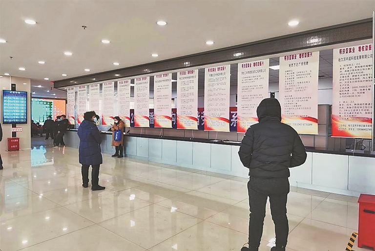 当天,香坊区人社局开展“春风行动”系列暨重点企业专场网络招聘活动。本次活动香坊区人社局通过开展抖音直播送岗、王科长热线就业服务活动招聘,面向哈市有转移就业意愿的农村富余劳动力、农民工等务工人员、脱贫人口、农村低收入人口等重点帮扶对象、退役军人及其家属、下岗失业人员、应往届高校毕业生等各类人群送政策、送岗位、送服务。香坊区人社局利用民生大厦四楼空间悬挂招聘海报,活动内容在办事大厅屏幕滚动播出,企业信息一目了然。本次招聘提供招工企业32家,发布工种数155个,发布岗位需求人数1544人。