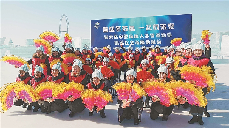 生活报讯 (记者李丹 梁晨文/摄) 24日上午,“喜迎冬残奥 一起向未来”第六届中国残疾人冰雪运动季黑龙江主场展示活动在冰雪大世界举行。此次活动由中国残疾人联合会主办,黑龙江省残疾人联合会承办,哈尔滨市残疾人联合会、哈尔滨冰雪大世界股份有限公司协办。活动中,哈尔滨市残联共组织7支展示队伍共计150余人参加此次体育活动成果展示。