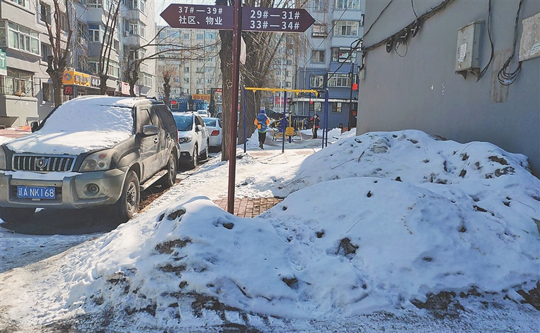 生活报讯 (帮办记者李威兵文/摄) 24日,哈市红旗小区的张先生通过生活报帮办热线反映,红旗小区清雪清得太慢了,居民出行十分不便。
