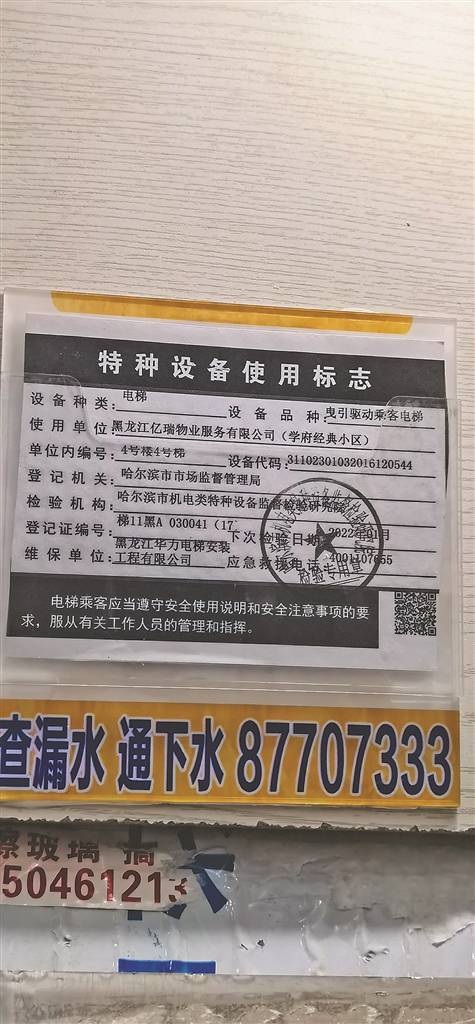 记者随后联系了负责状元府小区电梯质检的哈尔滨市特殊设备检测研究院,一位工作人员介绍了该小区的情况。
