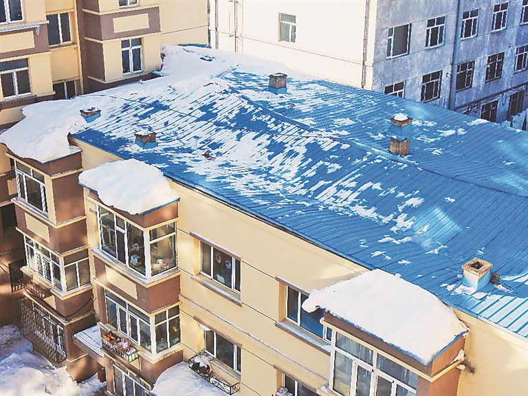 五二三小区:有房顶被雪压塌 房檐大面积掉落