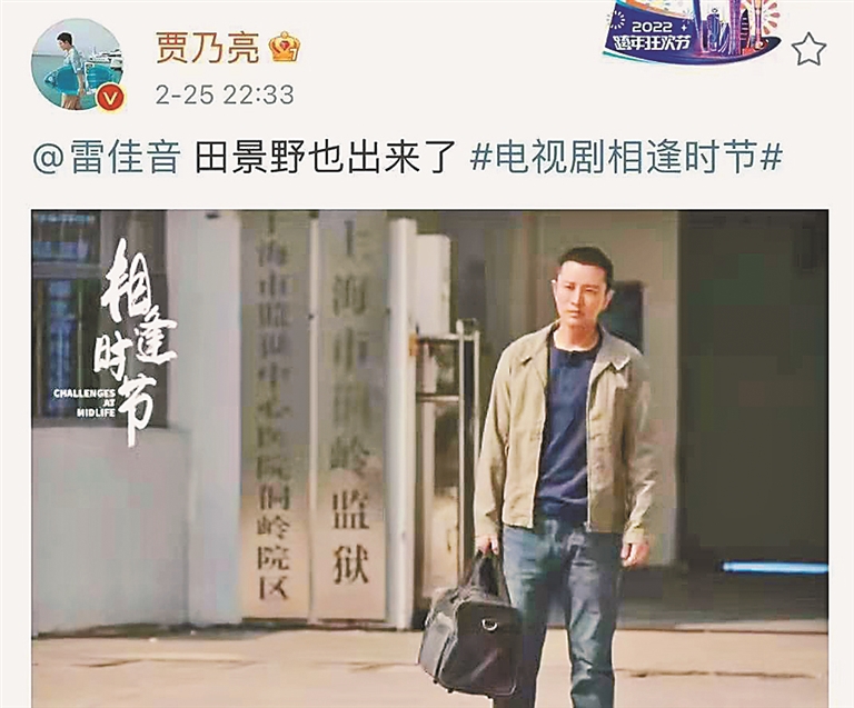 在《人世间》和《相逢时节》都有出演的雷佳音,也玩起了“穿越梗”。在《人世间》中,雷佳音出演的“周秉昆”有出狱的戏份,在《相逢时节》中,出演简宏成好友“田景野”的贾乃亮也有出狱的戏份,还是简宏成去接的他。于是,2月25日晚,雷佳音还和贾乃亮来了一个跨剧互动——在微博@贾乃亮,说“周秉昆出来了”。3分钟后,贾乃亮回复道:“田景野也出来了”。这样的梦幻互动,也让网友直呼“有创意”,一位同时追两部剧的网友在评论区给雷佳音留言:“哥,你这又是接人出狱又是自己出狱,这一天可够忙的。”