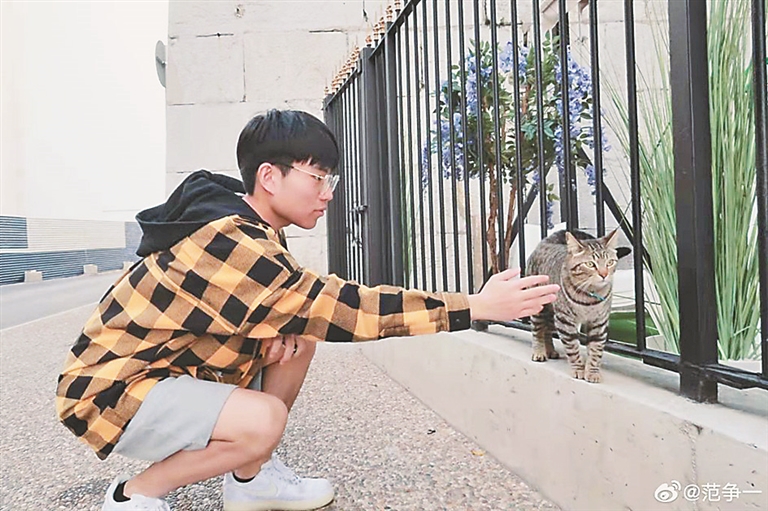 在范争一的微博上,除了获奖感言外,更多的是自己的生活照。就在比赛前,他还晒出了他家的猫“奶球”的4张照片,并且配文:“‘奶球’越来越圆润了”。另一篇微博中,他还晒出了他拍摄一只小猫的照片,可以看出他非常喜欢猫。同时,他也喜欢单板滑雪、打电玩等。