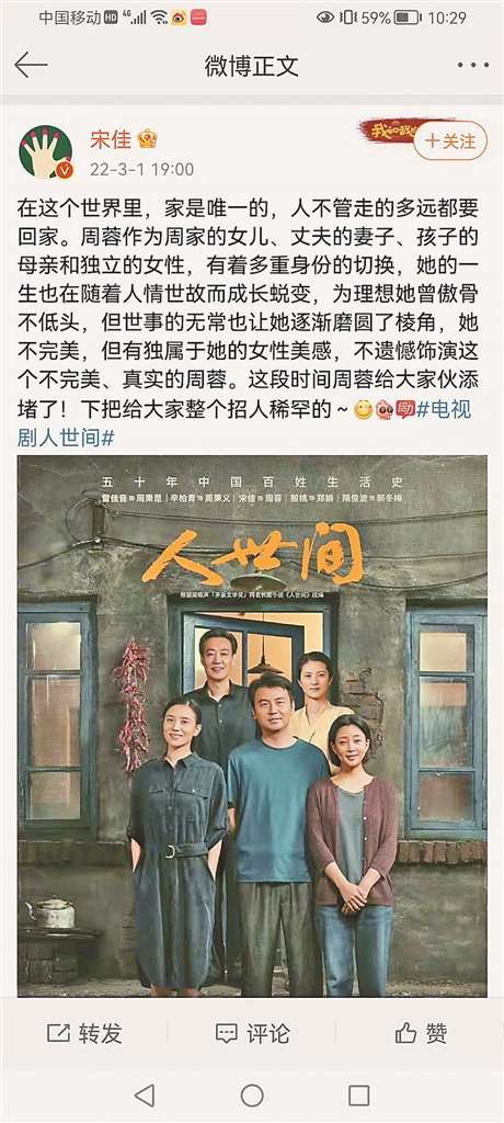 众演员与剧中人物“告别” “秉义”发长文 “周蓉”称“下把给大家整个招人稀罕的”