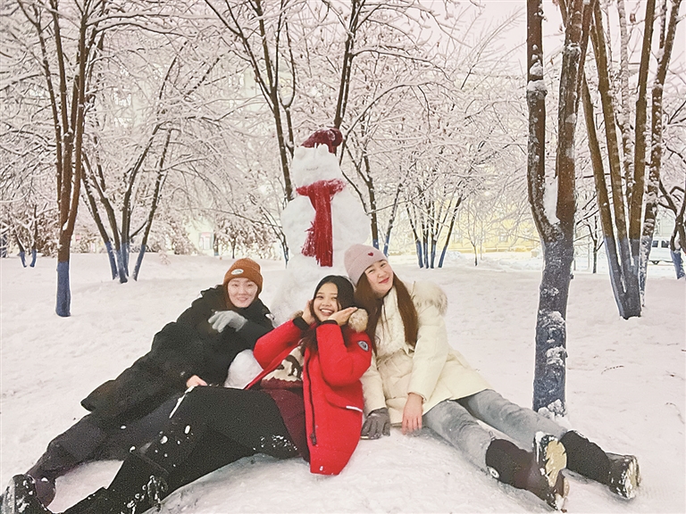 哈尔滨下第一场雪的时候,来自老挝的哈尔滨工程大学管理工程与科学专业的丁洁,兴奋地和同学们跑下楼,拿水桶和水盆当工具,从白天忙活到路灯亮起,一点一点垒好了一个半人高的雪堆,用雪球团成眼睛,用树枝装饰出憨厚的表情,再给戴上厚实的大红色毛线帽和围巾,一个又瘦又高的雪人就堆好了。“雪人有点丑。”虽然这样吐槽自己的作品,在与雪人合影时,坐在雪地上靠在朋友肩上的丁洁还是笑得十分灿烂。“师姐告诉我下第一场雪的时候许下的愿望都能实现,我也许了愿,希望我的中文能更好,好好学习,顺利完成学业。”