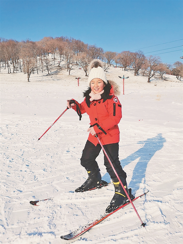 冬奥会上有许多精彩的比赛,其中的越野滑雪是我最感兴趣的。我也想体验一下滑雪的乐趣!我来到了哈尔滨附近的平山神鹿滑雪场,听了这个名字,你是不是会联想到“仙气飘飘”、灵动可爱的梅花鹿呢?你当然没有猜错,滑雪场附近就是小鹿的家,在体验滑雪的时候,你还能时不时地看到在雪中嬉戏的小鹿!乘坐“魔毯”到达坡顶时,我总是因为地面太滑而和雪地来一个“脸贴脸”。不过,穿上雪板在雪道中“遨游”时,迎面吹来的风,让我觉得仿佛落入人间仙境,快乐非凡!