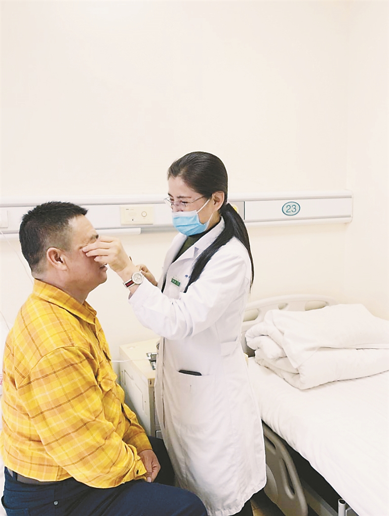 近日,哈市52岁的吴先生无明显诱因出现眼部胀痛、伴同侧太阳穴头痛、视力下降、下午恶心呕吐的症状,随即来到中医大一院眼科就诊。经眼科主任姚靖仔细检查后,发现该患者角膜水肿,前房浅,眼压高,诊断为双眼急性青光眼发作。姚靖诊断该患者伴头重眼胀,胸闷犯恶,纳食不馨,舌淡有齿痕,苔白腻,脉滑等,认为该患由于肥胖、加上过食肥甘厚味,饮食不节,生活习惯不规律等,导致脾虚湿泛,上犯于目窍而发为本病。姚靖给患者开具了健脾祛湿、通络明目的中药,并给与缩瞳、降眼压滴眼液。患者服用一周后复诊时表示,症状基本消失。