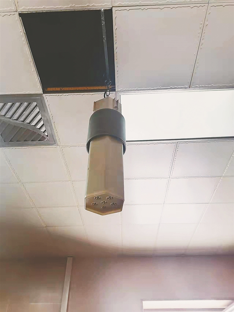 在公厕内部的天花板上,还安装了一个长方形的消毒除臭除尘设施,它能释放低浓度的臭氧和高浓度的负氧离子,可消灭超过90%以上的细菌病毒,达到对室内空气消毒除臭的功效。此外,静电设备可以吸附空气中的尘埃,达到除尘的功效。与一般的紫外线消毒设备不同,它在工作过程中,不会对正在如厕的人造成伤害。