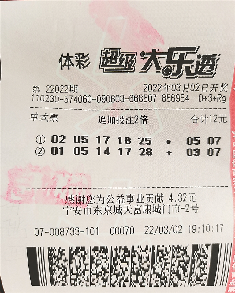 据了解,中奖者老李是位下岗的林业工人,平时靠打零工维持生计。被问及怎么选号时,老李说:“跟号跟出来的,没啥技巧,这2注追加2倍12元,期期跟,买了3年终于跟出来了。以前也中过2注大乐透追加二等奖,总额40多万。”被问及是否支持他购彩时,老李的爱人表示:“支持!他不抽烟也不喝酒,买彩票也适度,又支持公益,我支持!”