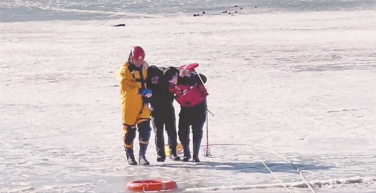 生活报讯 (记者肖劲彪) 11日13时17分,一名50多岁的中年男子冒险在松花江哈尔滨江段冰面上行走,不慎坠入江中,所幸救援人员及时赶到,坠江男子成功获救。