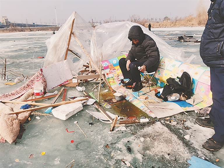 据市民刘先生介绍,冰面上的垃圾都是垂钓者留下的,从去年冬天他们就在这里进行垂钓,为了耐寒冬天在冰面上搭建窝棚垂钓,前几天窝棚被有关部门工作人员给拆了。刘先生表示,看到江面上的垃圾他非常气愤,垃圾要随身带走,垂钓者应该爱护环境。