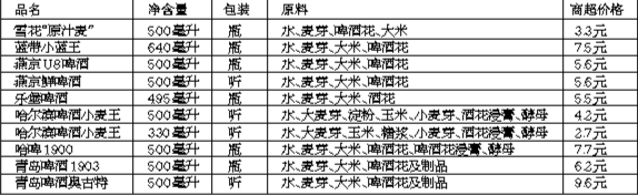 一款330毫升的听装哈尔滨啤酒小麦王的原料和500毫升的哈尔滨啤酒小麦王原料基本一致,包括水、大麦芽、小麦芽、酵母,只不过没有淀粉,却多了糖浆。售价为2.2元的新三星小麦王500毫升听装啤酒,原料除了水、大麦芽、小麦芽和啤酒花外,还加入了啤酒用糖浆。