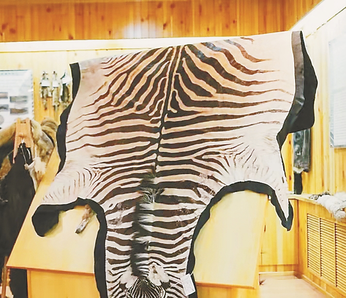 斑马皮是马建章院士赠送给毛皮标本馆的,马院士是中国野生动物管理的奠基人,在马院士70寿辰的时候,他的学生把斑马皮作为生日礼物赠送给他,之后马院士又赠送给了毛皮标本馆。在斑马胚胎发育的早期,它的颜色是全黑的,随着胚胎的逐渐发育和长大,才开始出现白条纹,因此斑马是黑马,带白条纹。