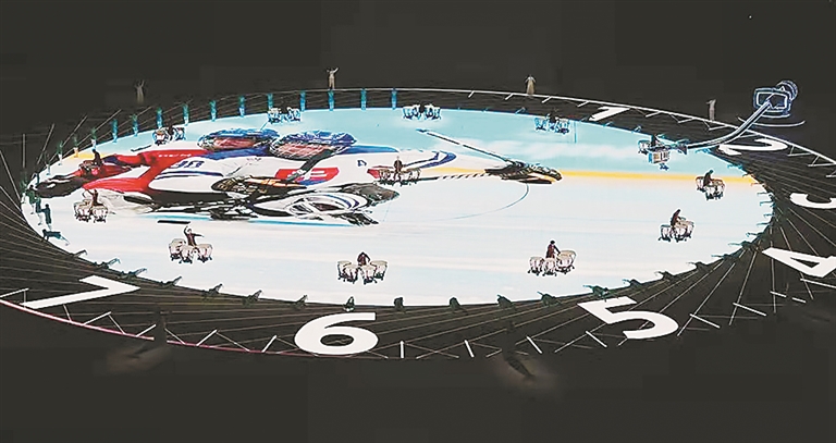 本届冬残奥会恰好是第13届冬残奥会,主创团队特意选用13套定音鼓在会场中央排成一个偌大的表盘。由12个打击乐手围成时针的刻度,一名打击乐手位列表盘中央,表盘周围60位舞蹈演员代表秒针的转动,诠释出奔流不息的“时间”前进和更迭的形象,寓意全球“共享此刻、共赴未来”,史博雅所在的位置正是表盘的2点钟方向。