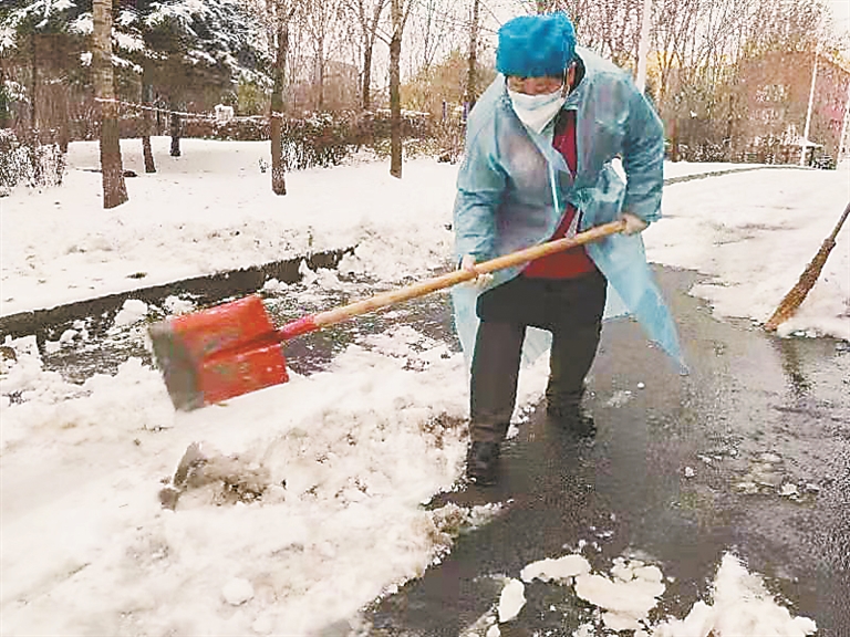 检测开始前,她是“采样准备员”,每天早早地到达康安社区采样点,帮助社区工作人员布置现场,准备采样用品,清理采样点附近的冰雪。