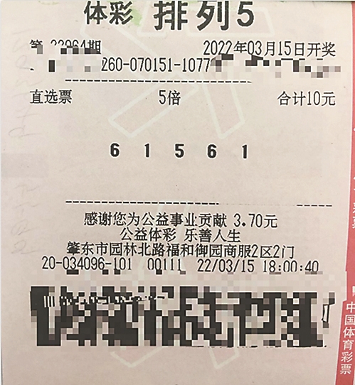 于是,他第二天到附近体育彩票实体店进行了奖金兑付,顺便又购买了当日开奖的第22046期排列5直选10倍的彩票。谁曾想,幸运一波接着一波,要不老话说得好,运气来了,挡也挡不住。他又幸运地中得排列5大奖,还是10注,总奖金100万元。