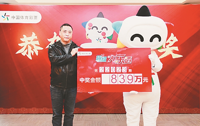 生活报讯 (许褚) 3月9日,中得839万元的贵州遵义市购彩者赵先生亮相贵州省体育彩票管理中心,领取他的体彩大奖。