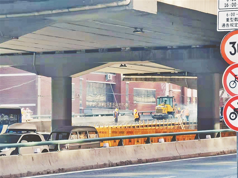 23日下午,记者来到现场看到,康安路二环桥的下桥匝道的确正在封闭施工。走近现场记者看到,路面并未损坏,匝道两侧隔离护栏正在拆除。
