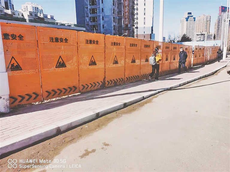 22日,松北城管工作人员再次向记者反馈,“这里已完成人行道铺装56.25平方米,街面设置围挡44片。换乘市民有人行道可以走了,之前的泥泞地面也已经进行围挡。等到温度合适以后,围挡里绿化后,再将围挡打开。”