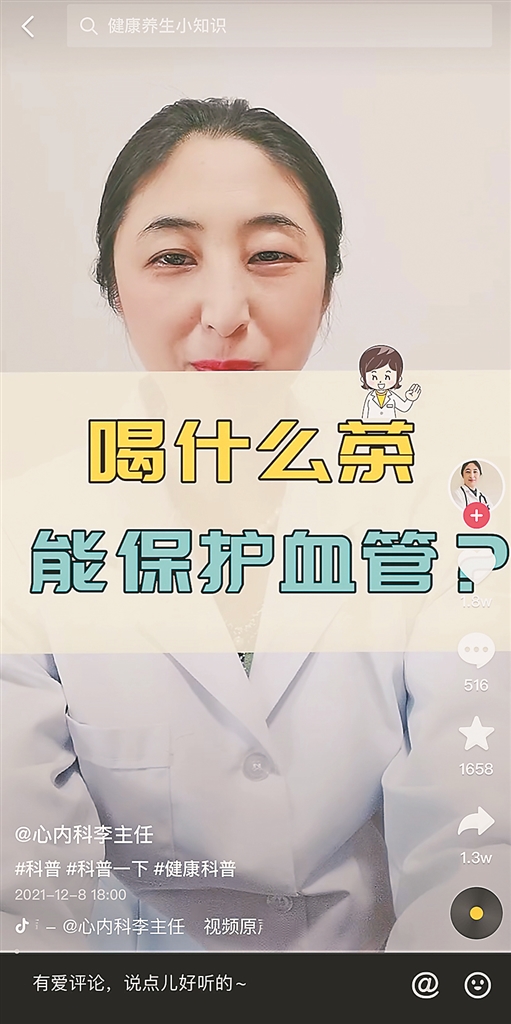 握拳30秒,就能知道血管好不好?长期吃降压药,副作用大不大……点开李莹短视频账号的主页,一个个她身穿白大褂讲述“心”事的短视频映入眼帘。