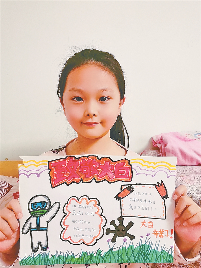 小记者 哈尔滨新区第一小学校 四年一班 刘芊惠:感谢我们的大白,因为有了他们,疫情才不会更快地扩散,我们也要积极配合他们,少出门、不聚集,出门佩戴口罩,希望疫情早点儿结束!