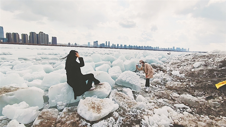 一位擅长摄影的老师傅告诉生活报记者,拍这样的景色一定要把机位放低,卡掉对岸的高楼大厦,才能拍出接近自然景观的效果。拍出照片一看吓一跳,竟然拍出了冰山的感觉。